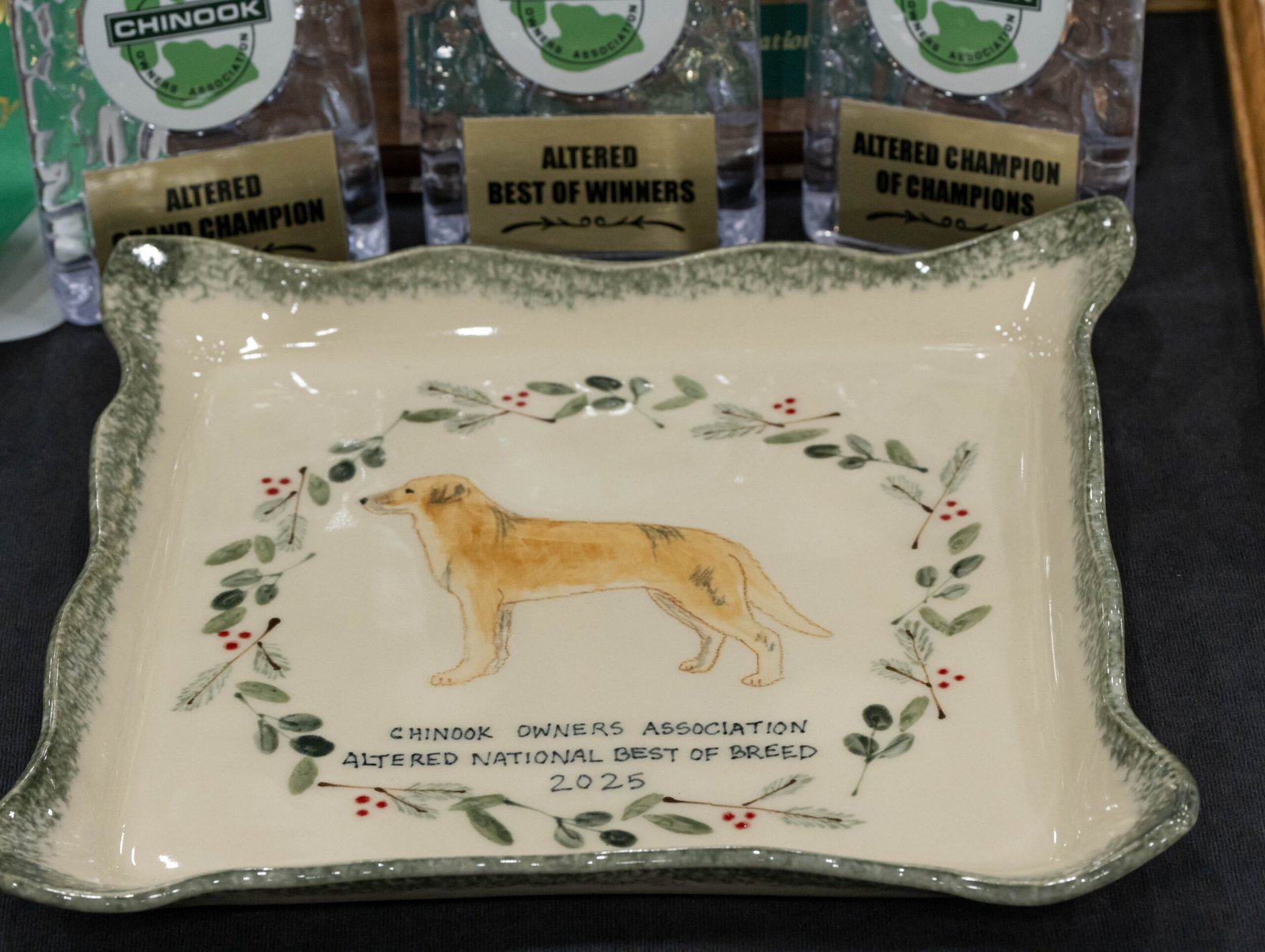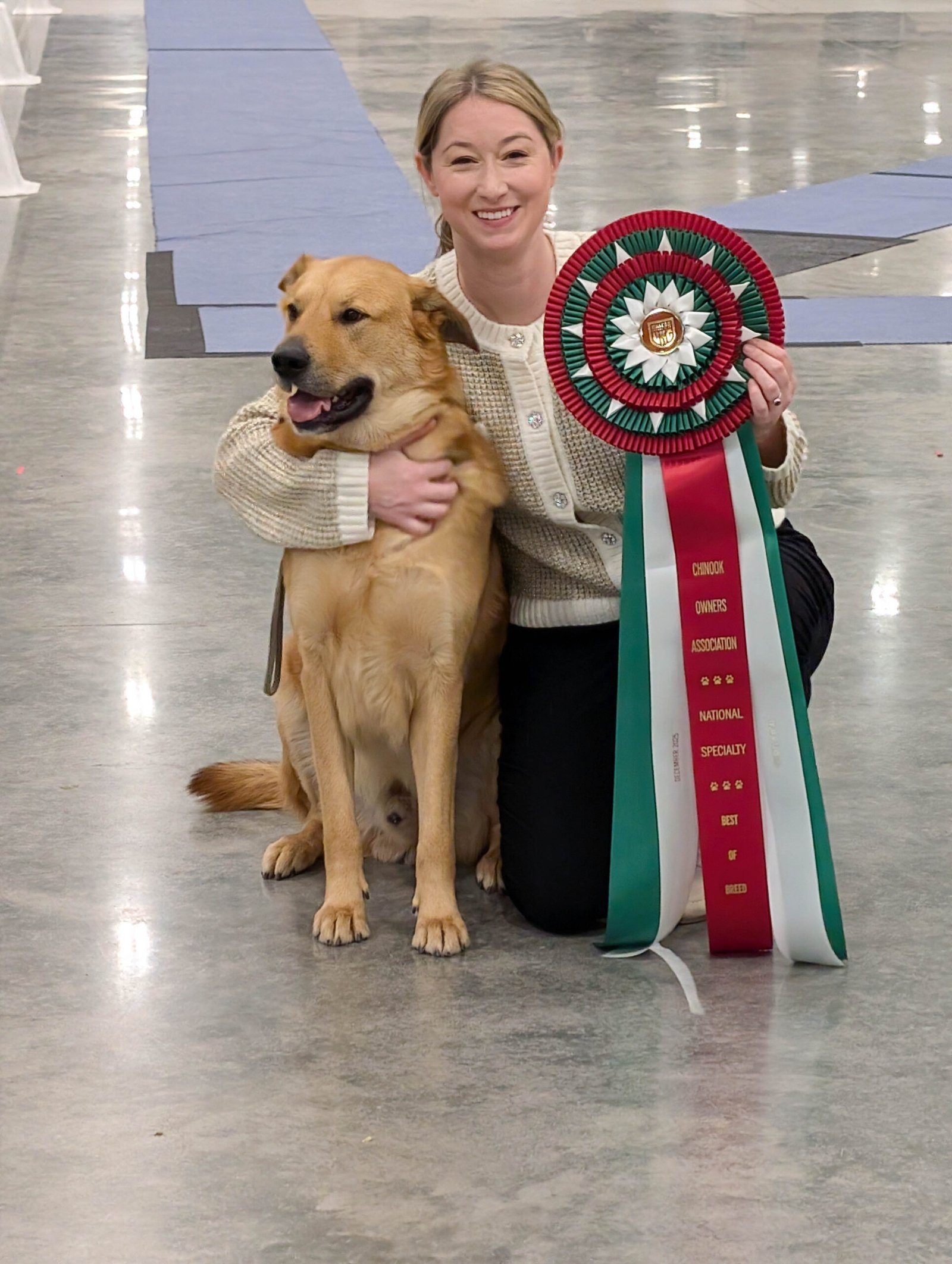 Every year, the Chinook Owners Association (COA) hosts a National Specialty to showcase and to crown a National Best of Breed (NBOB). All UKC registered intact, altered, and crossbred Chinooks can participate in the Specialty. The Specialty is held every other year in conjunction with the UKC Premier or Gateway National show, and rotates in the other years to the East and West regions of the United States. In years when the Specialty is a single breed only show, we also host Chinook Games and a Family Reunion. These shows are a great opportunity to meet other Chinooks, and to try your hand at events such as lure coursing, sledding seminars, weight pull, obedience and more. And let’s not forget the annual banquet...
